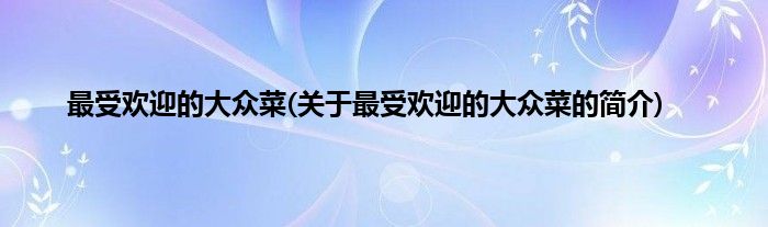 大家好,最受欢迎的大众菜,关于最受欢迎的大众菜的简介很多人还不知道,现在让我们一起来看看吧!