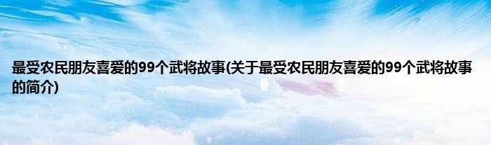 大家好,最受农民朋友喜爱的99个武将故事,关于最受农民朋友喜爱的99个武将故事的简介很多人还不知道,现在让我们一起来看看吧!