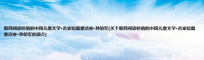 本文关于最具阅读价值的中国儿童文学·名家短篇童话卷·孙幼军的简介就讲解完毕,希望对大家有所帮助。