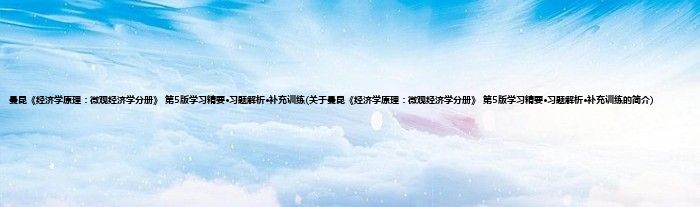 大家好,曼昆《经济学原理:微观经济学分册》 第5版学习精要·习题解析·补充训练,关于曼昆《经济学原理:微观经济学分册》 第5版学习精要·习题解析·补充训练的简介很多人还不知道,现在让我们一起来看看吧!