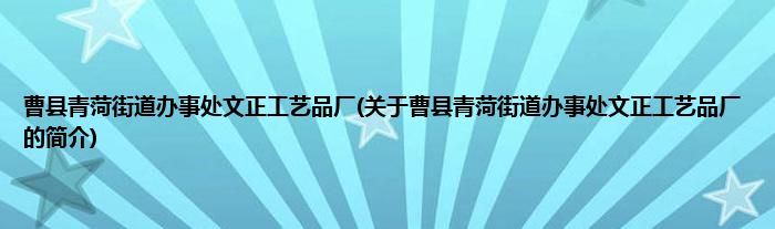大家好,曹县青菏街道办事处文正工艺品厂,关于曹县青菏街道办事处文正工艺品厂的简介很多人还不知道,现在让我们一起来看看吧!