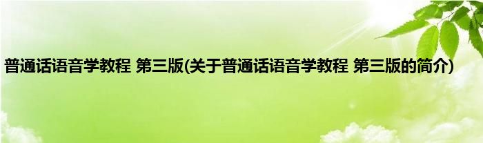 本文关于普通话语音学教程 第三版的简介就讲解完毕,希望对大家有所帮助。