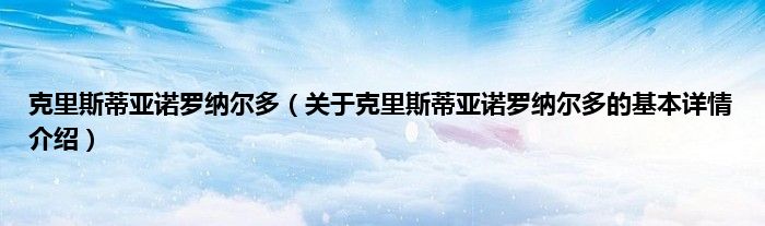 本文关于克里斯蒂亚诺罗纳尔多的基本详情介绍就讲解完毕,希望对大家有所帮助。