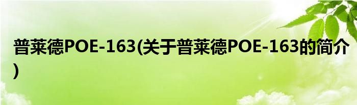 大家好,普莱德POE-163,关于普莱德POE-163的简介很多人还不知道,现在让我们一起来看看吧!