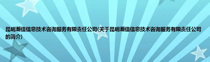 昆明潮信信息技术咨询服务有限责任公司(关于昆明潮信信息技术咨询服务有限责任公司的简介)