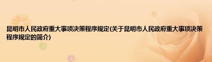 本文关于昆明市人民政府重大事项决策程序规定的简介就讲解完毕,希望对大家有所帮助。