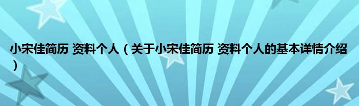 本文关于小宋佳简历 资料个人的基本详情介绍就讲解完毕,希望对大家有所帮助。