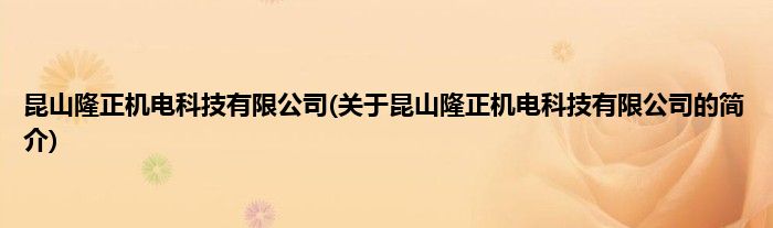 本文关于昆山隆正机电科技有限公司的简介就讲解完毕,希望对大家有所帮助。