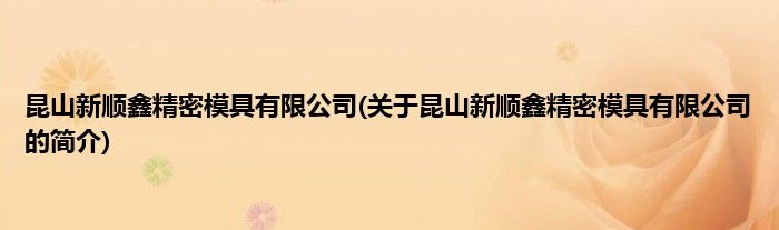 昆山新顺鑫精密模具有限公司(关于昆山新顺鑫精密模具有限公司的简介)