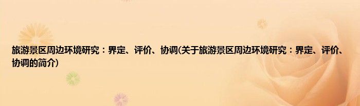 本文关于旅游景区周边环境研究:界定、评价、协调的简介就讲解完毕,希望对大家有所帮助。