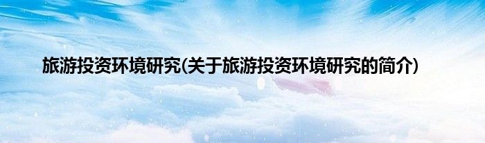本文关于旅游投资环境研究的简介就讲解完毕,希望对大家有所帮助。