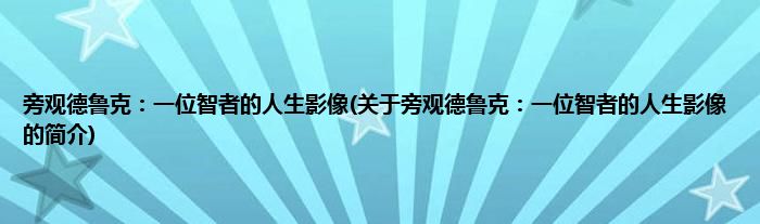 本文关于旁观德鲁克:一位智者的人生影像的简介就讲解完毕,希望对大家有所帮助。