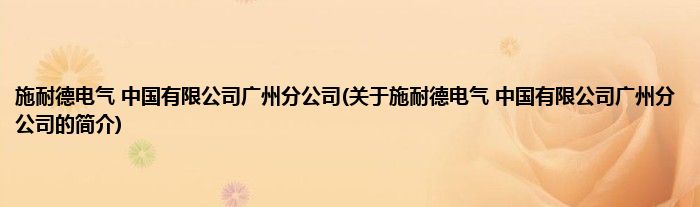 施耐德电气 中国有限公司广州分公司(关于施耐德电气 中国有限公司广州分公司的简介)