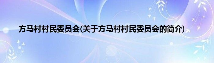 本文关于方马村村民委员会的简介就讲解完毕,希望对大家有所帮助。