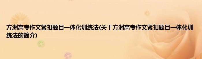 方洲高考作文紧扣题目一体化训练法(关于方洲高考作文紧扣题目一体化训练法的简介)