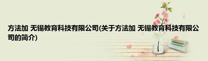 本文关于方法加 无锡教育科技有限公司的简介就讲解完毕,希望对大家有所帮助。