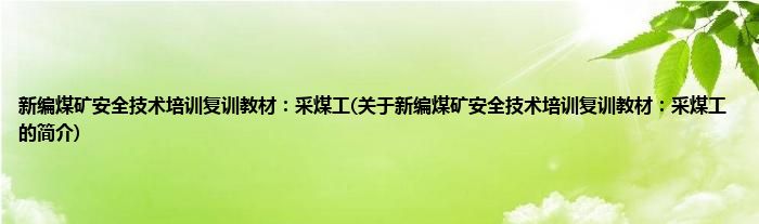 本文关于新编煤矿安全技术培训复训教材:采煤工的简介就讲解完毕,希望对大家有所帮助。