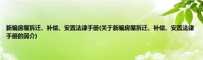 本文关于新编房屋拆迁、补偿、安置法律手册的简介就讲解完毕,希望对大家有所帮助。