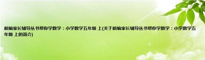 大家好,新编家长辅导丛书帮你学数学:小学数学五年级 上,关于新编家长辅导丛书帮你学数学:小学数学五年级 上的简介很多人还不知道,现在让我们一起来看看吧!