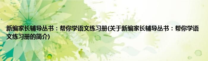 大家好,新编家长辅导丛书:帮你学语文练习册,关于新编家长辅导丛书:帮你学语文练习册的简介很多人还不知道,现在让我们一起来看看吧!