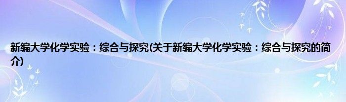 本文关于新编大学化学实验:综合与探究的简介就讲解完毕,希望对大家有所帮助。
