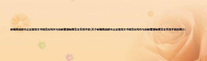 大家好,新编商场超市企业常用文书规范化写作与创新管理制度范本实用手册,关于新编商场超市企业常用文书规范化写作与创新管理制度范本实用手册的简介很多人还不知道,现在让我们一起来看看吧!