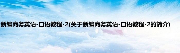 大家好,新编商务英语-口语教程-2,关于新编商务英语-口语教程-2的简介很多人还不知道,现在让我们一起来看看吧!