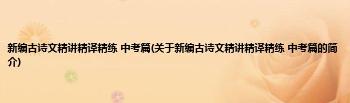 新编古诗文精讲精译精练 中考篇(关于新编古诗文精讲精译精练 中考篇的简介)