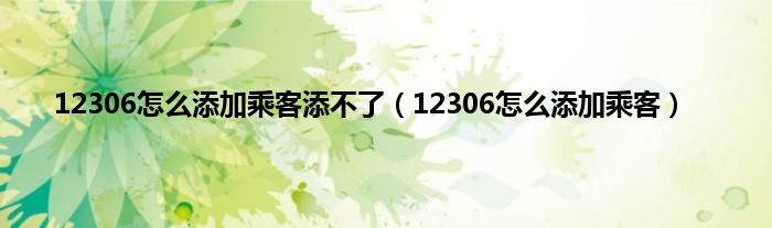 大家好,精选小编来为大家解答以上问题。12306怎么添加乘客添不了,12306怎么添加乘客很多人还不知道,现在让我们一起来看看吧!