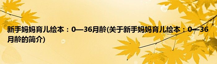 大家好,新手妈妈育儿绘本:0—36月龄,关于新手妈妈育儿绘本:0—36月龄的简介很多人还不知道,现在让我们一起来看看吧!