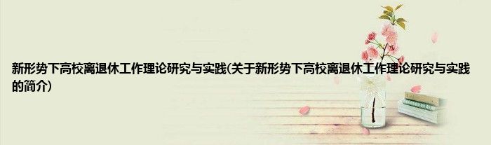 大家好,新形势下高校离退休工作理论研究与实践,关于新形势下高校离退休工作理论研究与实践的简介很多人还不知道,现在让我们一起来看看吧!