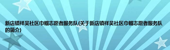 大家好,新店镇祥吴社区巾帼志愿者服务队,关于新店镇祥吴社区巾帼志愿者服务队的简介很多人还不知道,现在让我们一起来看看吧!