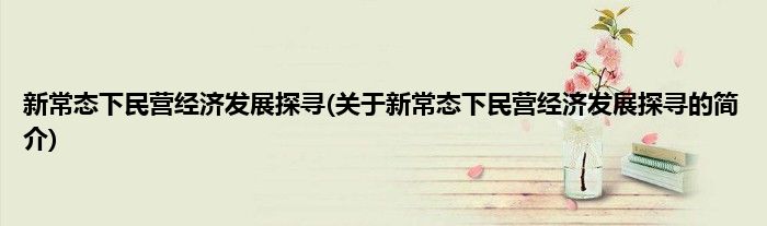本文关于新常态下民营经济发展探寻的简介就讲解完毕,希望对大家有所帮助。