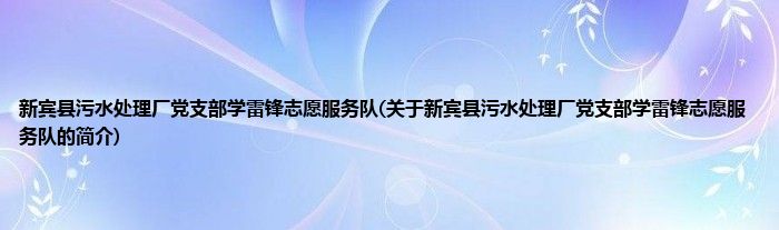 大家好,新宾县污水处理厂党支部学雷锋志愿服务队,关于新宾县污水处理厂党支部学雷锋志愿服务队的简介很多人还不知道,现在让我们一起来看看吧!