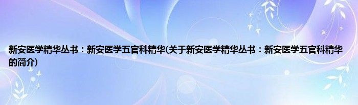 本文关于新安医学精华丛书:新安医学五官科精华的简介就讲解完毕,希望对大家有所帮助。