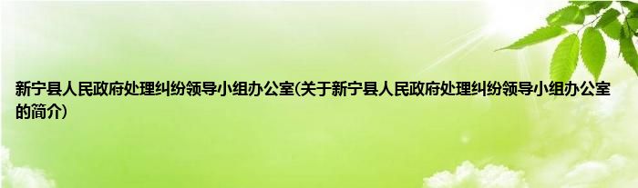 本文关于新宁县人民政府处理纠纷领导小组办公室的简介就讲解完毕,希望对大家有所帮助。