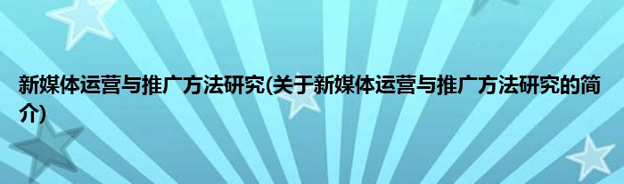 本文关于新媒体运营与推广方法研究的简介就讲解完毕,希望对大家有所帮助。
