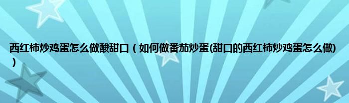 以上介绍的是口甜西红柿炒鸡蛋的制作方法。看了上面的介绍,应该有所了解了。虽然做西红柿炒鸡蛋看起来很简单,但是要想做的好吃,其实很难,需要掌握很多技巧。你需要注意一下。