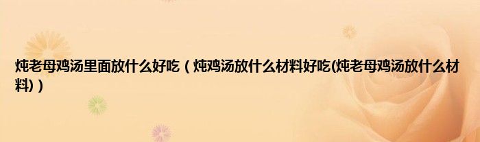 大家好,小科来为大家解答以上问题。炖老母鸡汤里面放什么好吃,炖鸡汤放什么材料好吃(炖老母鸡汤放什么材料)很多人还不知道,现在让我们一起来看看吧!