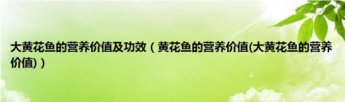 大家好,小科来为大家解答以上问题。大黄花鱼的营养价值及功效,黄花鱼的营养价值(大黄花鱼的营养价值)很多人还不知道,现在让我们一起来看看吧!