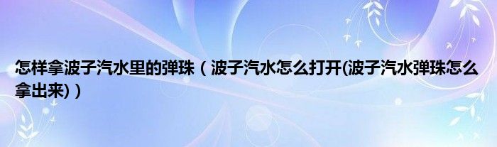 大家好,小科来为大家解答以上问题。怎样拿波子汽水里的弹珠,波子汽水怎么打开(波子汽水弹珠怎么拿出来)很多人还不知道,现在让我们一起来看看吧!