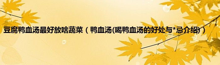 大家好,小科来为大家解答以上问题。豆腐鸭血汤最好放啥蔬菜,鸭血汤(喝鸭血汤的好处与*忌介绍)很多人还不知道,现在让我们一起来看看吧!