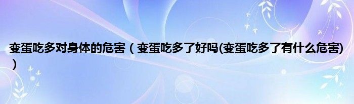 大家好,小科来为大家解答以上问题。变蛋吃多对身体的危害,变蛋吃多了好吗(变蛋吃多了有什么危害)很多人还不知道,现在让我们一起来看看吧!