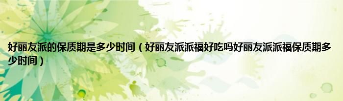 大家好,小科来为大家解答以上问题。好丽友派的保质期是多少时间,好丽友派派福好吃吗好丽友派派福保质期多少时间很多人还不知道,现在让我们一起来看看吧!