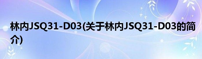 本文关于林内JSQ31-D03的简介就讲解完毕,希望对大家有所帮助。