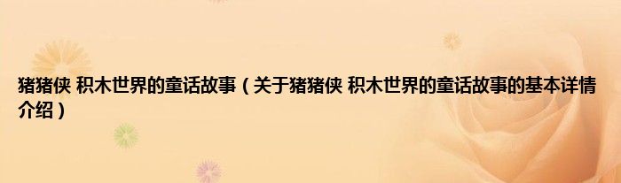 本文关于猪猪侠 积木世界的童话故事的基本详情介绍就讲解完毕,希望对大家有所帮助。