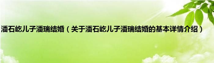 本文关于潘石屹儿子潘瑞结婚的基本详情介绍就讲解完毕,希望对大家有所帮助。