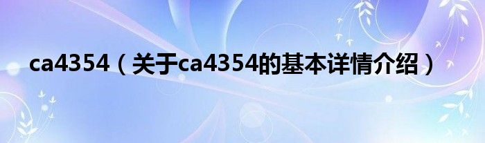 本文关于ca4354的基本详情介绍就讲解完毕,希望对大家有所帮助。