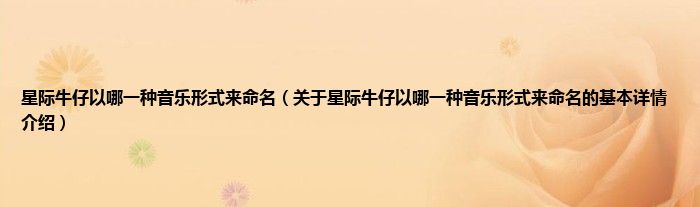 本文关于星际牛仔以哪一种音乐形式来命名的基本详情介绍就讲解完毕,希望对大家有所帮助。