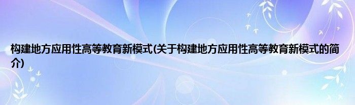 本文关于构建地方应用性高等教育新模式的简介就讲解完毕,希望对大家有所帮助。